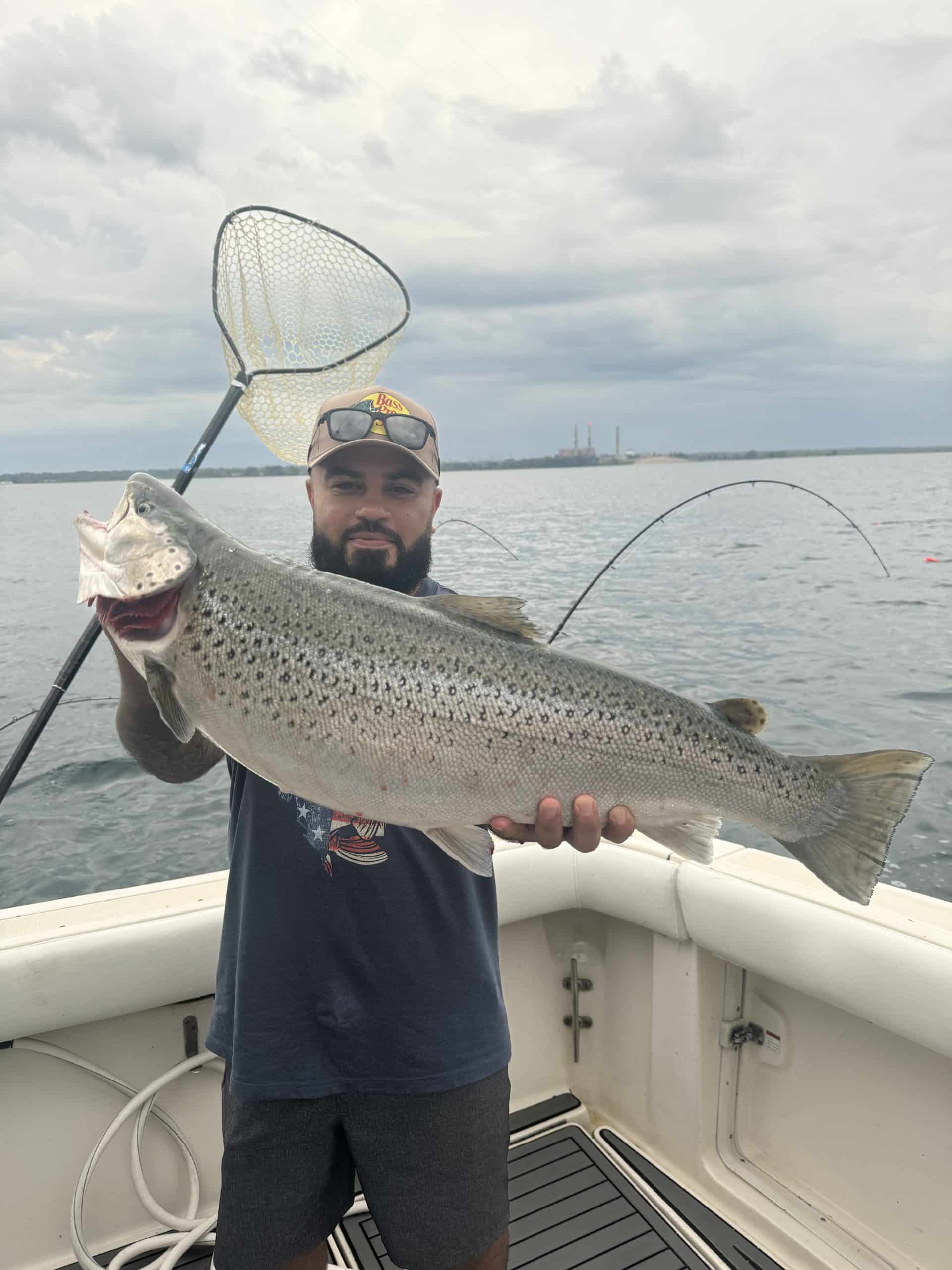 Identification: The interior of the mouth is entirely white. Lake run brown trout usually are silver, just like coho. However, once out of the water the typical large round spots, accented by a light colored hollow, begin to show. Normally the anal fin has only 9-10 rays, which separate it from other trout and salmon with the exception of the occasionally caught Atlantic salmon.